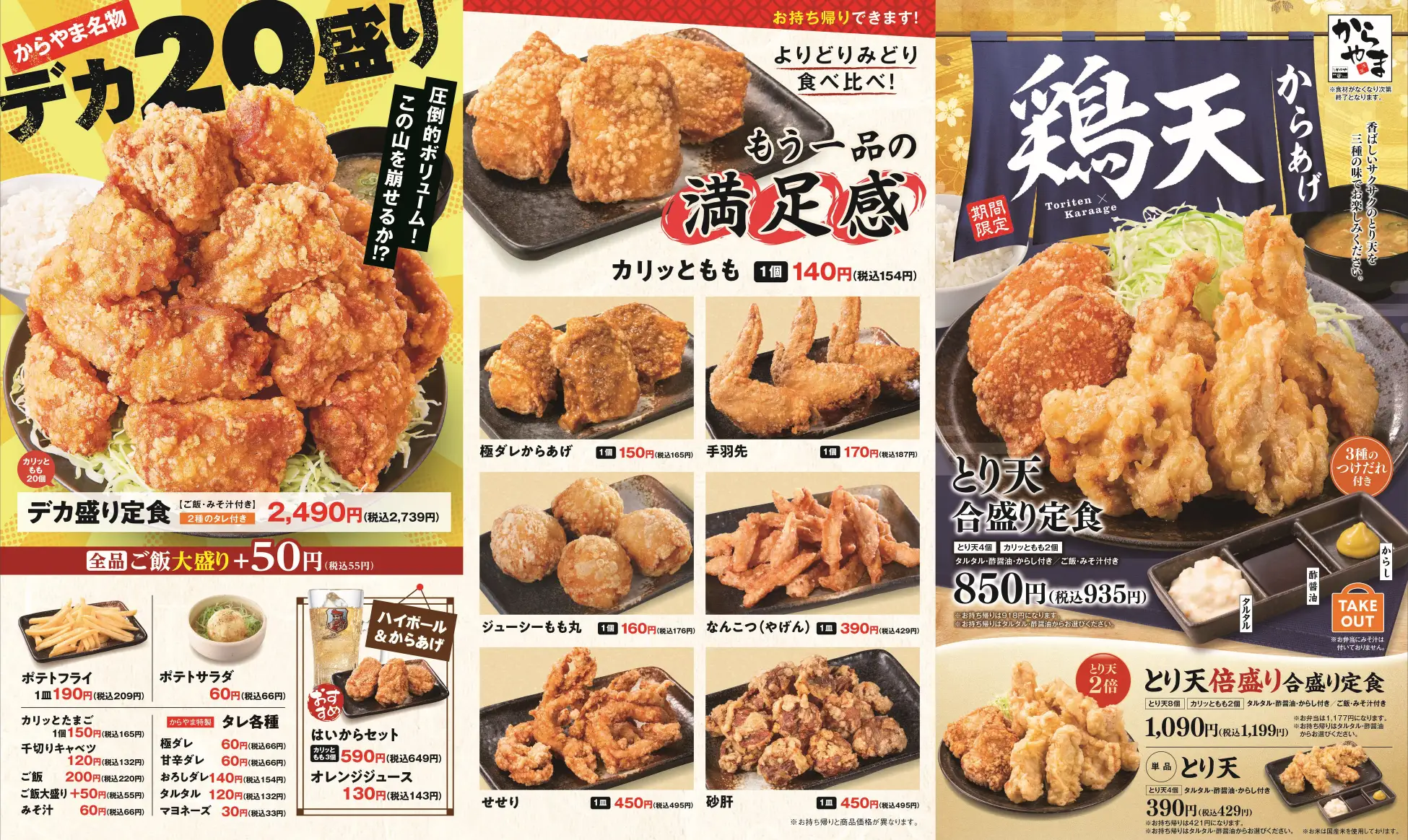 2026年3⽉19⽇(木)よりからやまにて「とり天合盛り定食」と「とり天倍盛り合盛り定食」を期間限定で販売開始いたします。